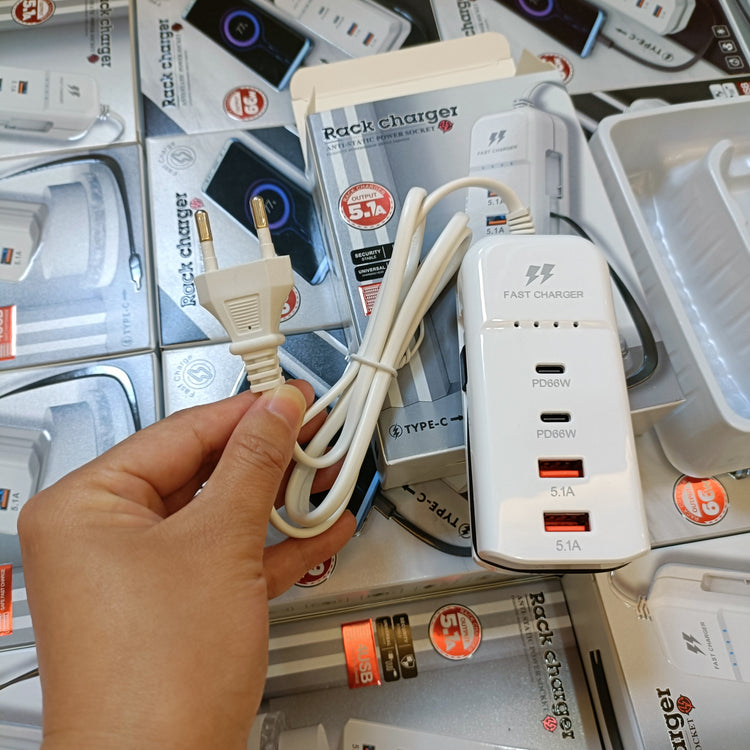 • 66W Total Output (2PD + 2 USB) with Type-C fast charging