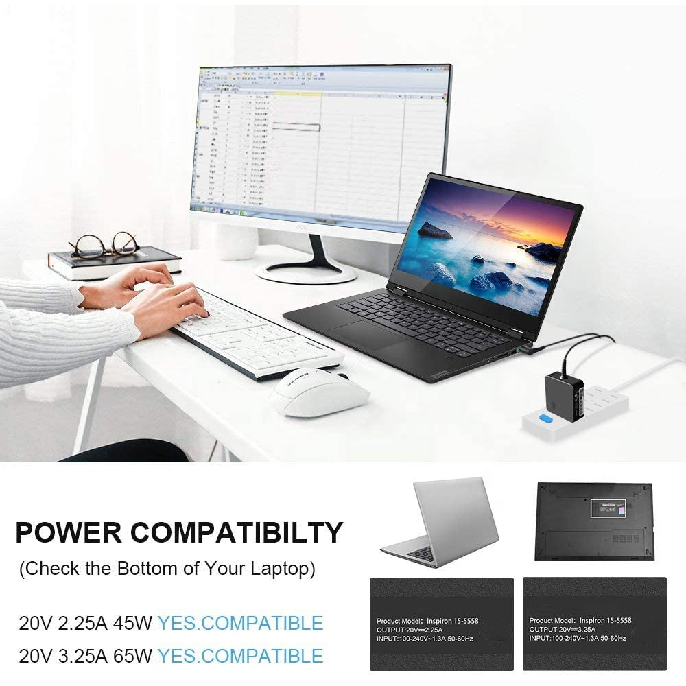 Delivers up to 65W output (20V 3.25A) for quick, efficient charging and reduced downtime — ideal for work, school, or travel.