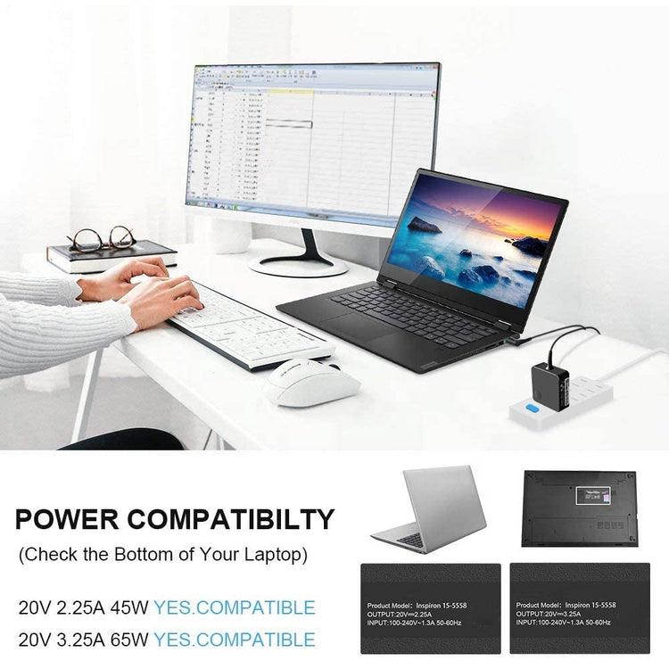 • Devices supporting 45W or 65W USB or DC input (check specs before use)