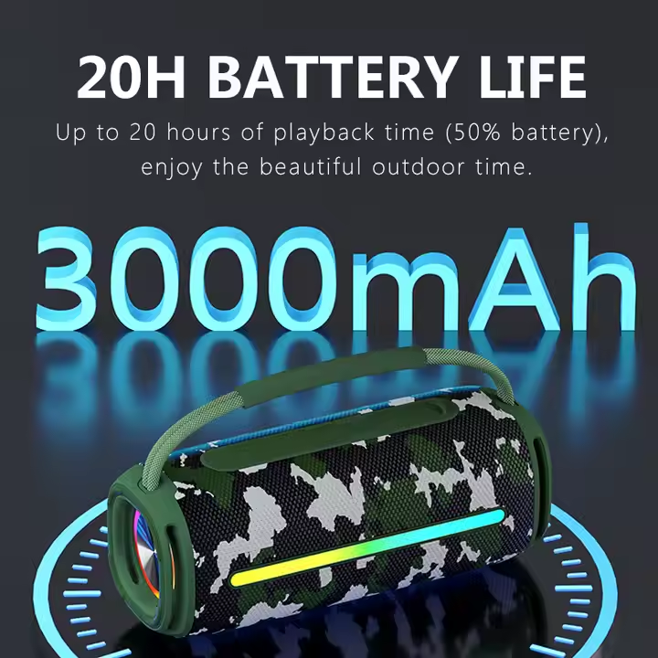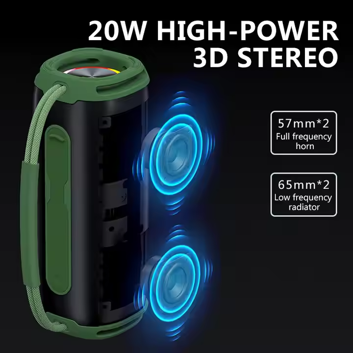 Portable TWS Wireless Bluetooth Speaker – 20W Stereo Sound, IPX6 Waterproof, RGB LED Light